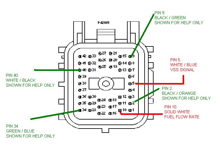 into pin 1 (White/Black) and the Fuel Flow signal connects to pin